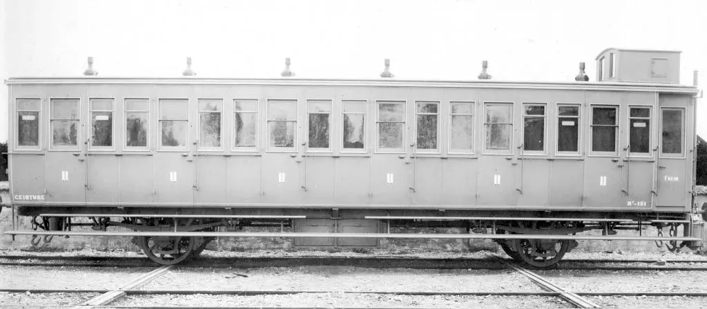 Le Chemin de fer de Ceinture reprend des modèles de voitures de 1re classe de la Compagnie de l’Est. Un premier modèle est mis en service en 1880 et 1882, puis un second en 1885.