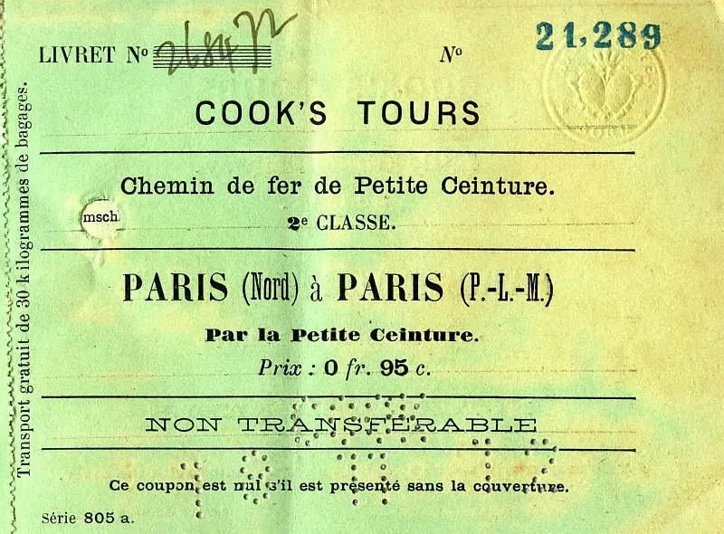 Billet pour un train grandes lignes empruntant la Petite Ceinture.